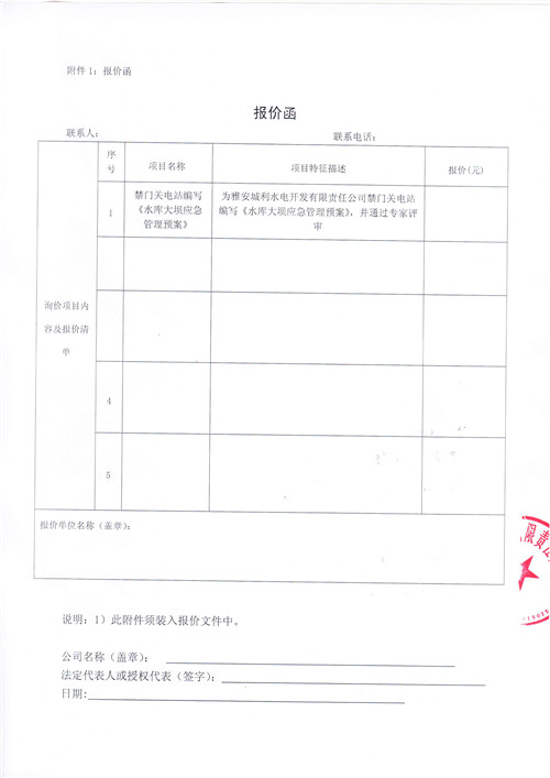 詢價(jià)函(《水庫(kù)大壩應(yīng)急管理預(yù)案》)