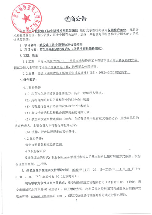 城投建工防塵降噪檢測儀器采購競爭性談判公告