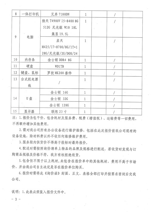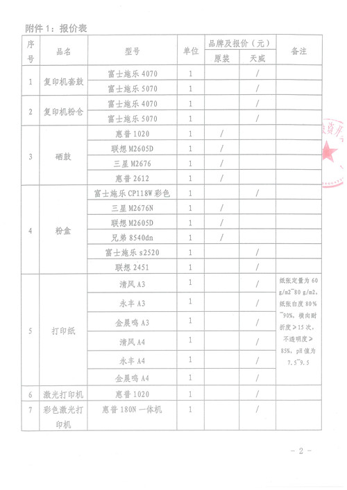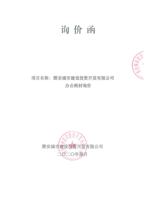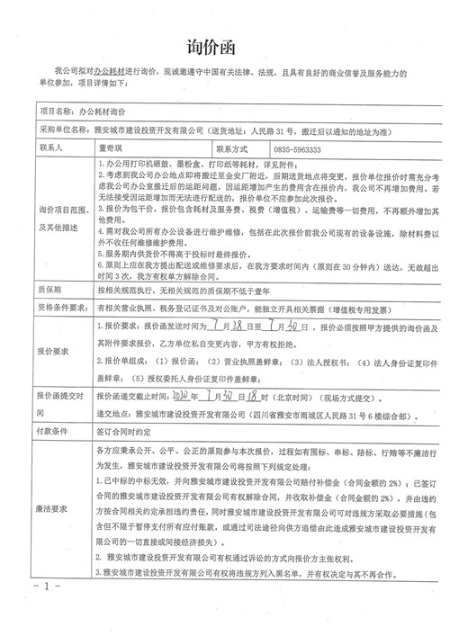 雅安城市建設(shè)投資開發(fā)有限公司辦公耗材詢價函
