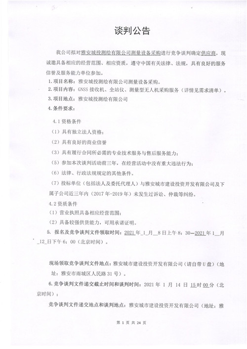 雅安城投測繪有限公司測量設(shè)備采購競爭性談判公告
