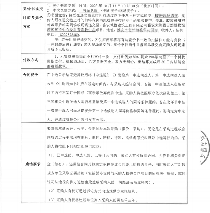 雅安大熊貓自然博物館游客接待中心及科普宣教中心項目吊籃租賃采購競價公告