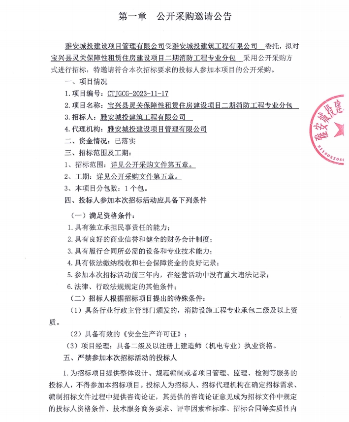 寶興縣靈關(guān)保障性租賃住房建設(shè)項(xiàng)目二期消防工程專(zhuān)業(yè)分包公開(kāi)采購(gòu)邀請(qǐng)公告