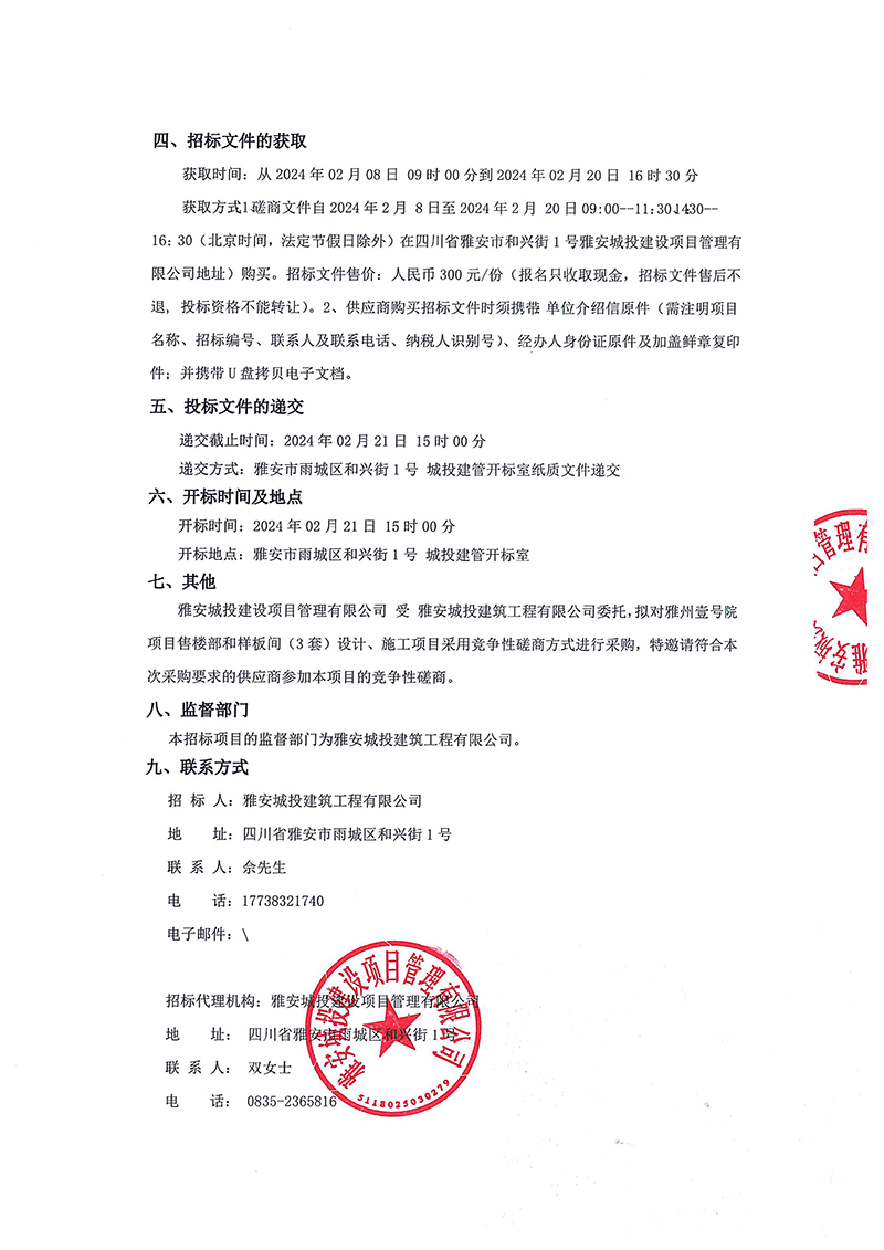 雅州壹號項目售樓部和樣板間(3套)設(shè)計、施工項目招標公告