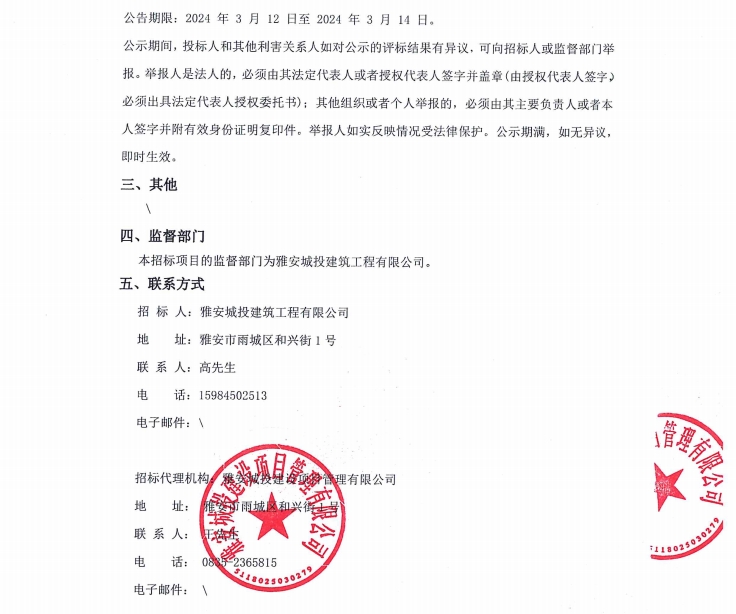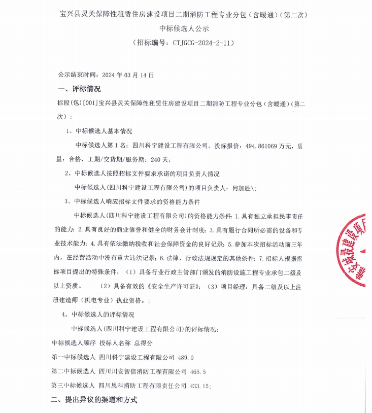 寶興縣靈關(guān)保障性租賃住房建設(shè)項(xiàng)目二期消防工程專業(yè)分包(含暖通)(第二次)中標(biāo)候選人公示