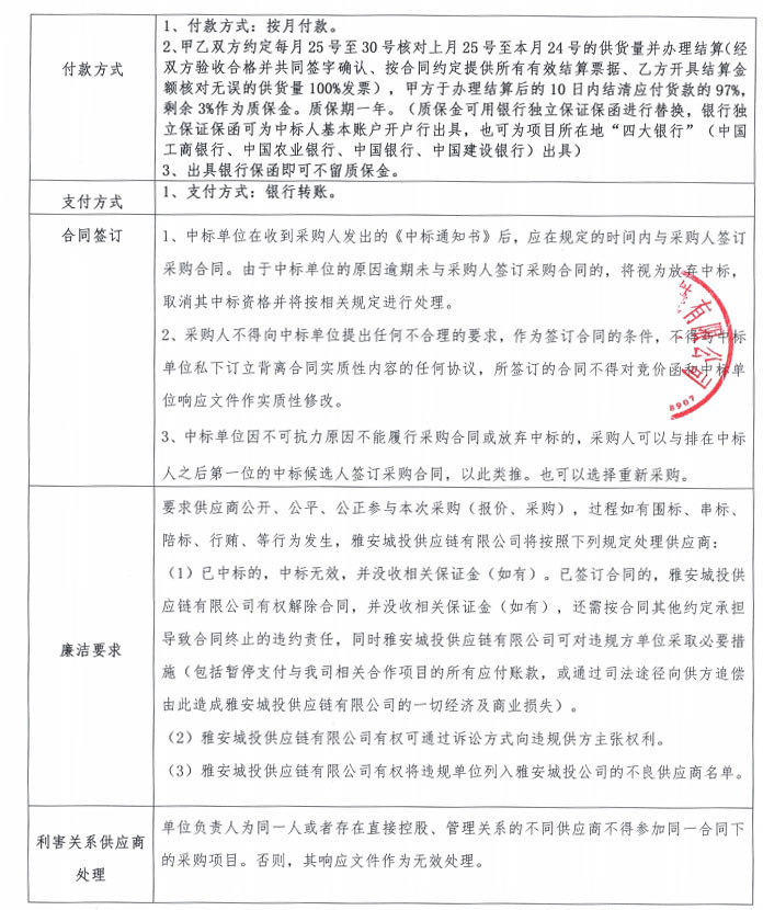 雅安城投供應鏈有限公司電線電纜采購競價公告