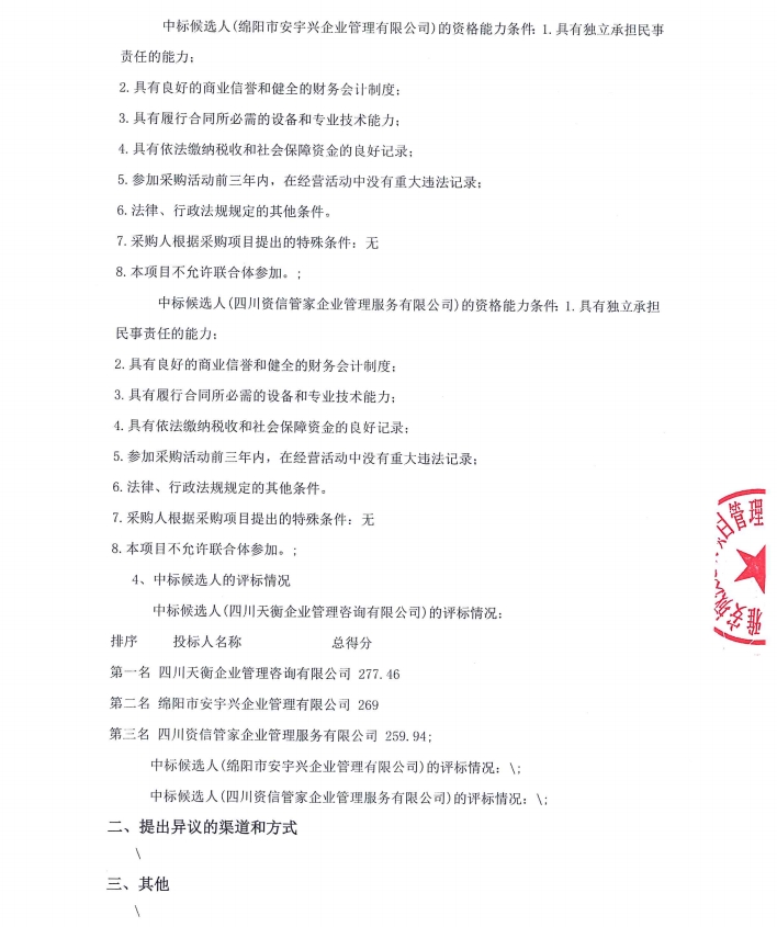 雅安城投工匠建設(shè)工程有限公司水利水電施工總承包二級資質(zhì)申辦咨詢服務(wù)采購項(xiàng)目中標(biāo)候選人公示