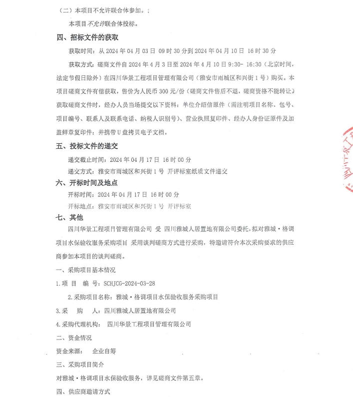 雅城·格調(diào)項目水保驗收服務采購項目競爭性磋商公告