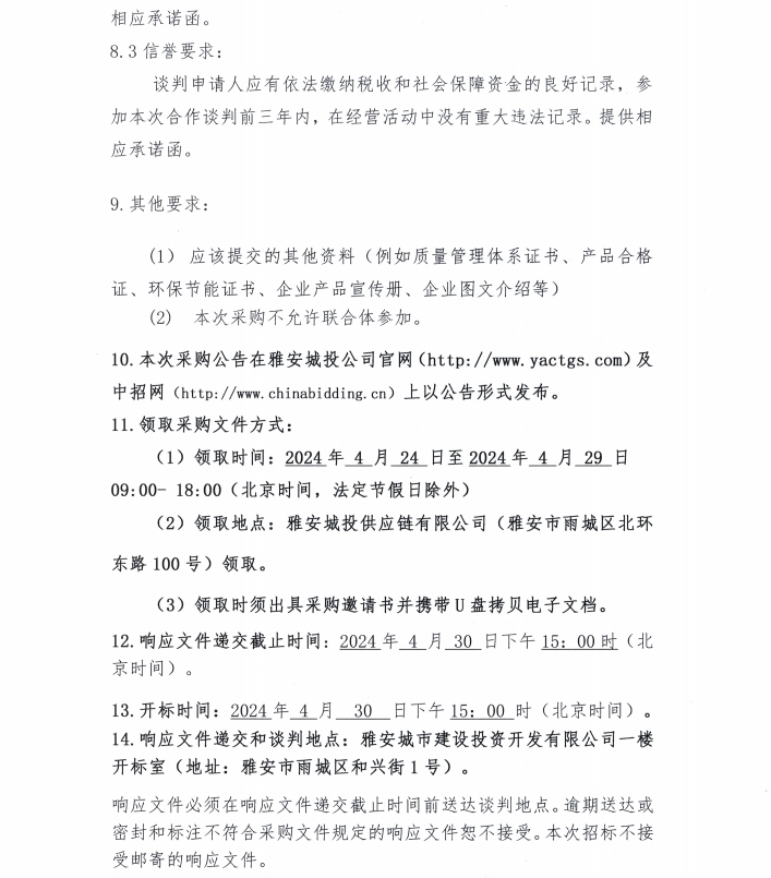 2024年4月-2025年3月雅安城投供應(yīng)鏈有限公司鋁合金型材、塑鋼型材采購(gòu)公告