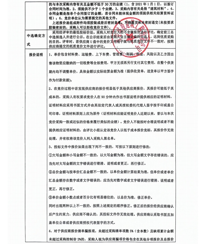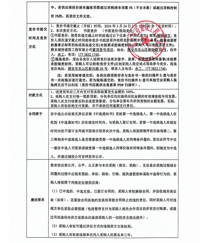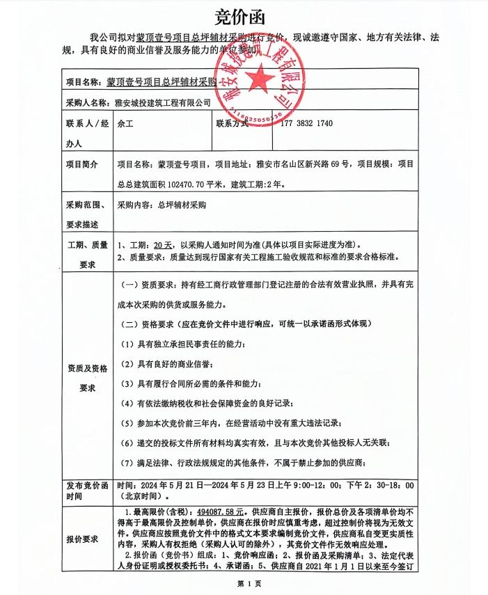 蒙頂壹號項目總坪輔材采購競價公告